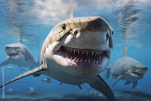Fototapeta premium Tiger Shark , Lemon Shark and grey reef shark. Sometimes with a hammerhead Shark