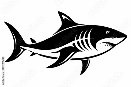 © Pinak, Fototapeta premium tiger shark line art silhouette vector illustration