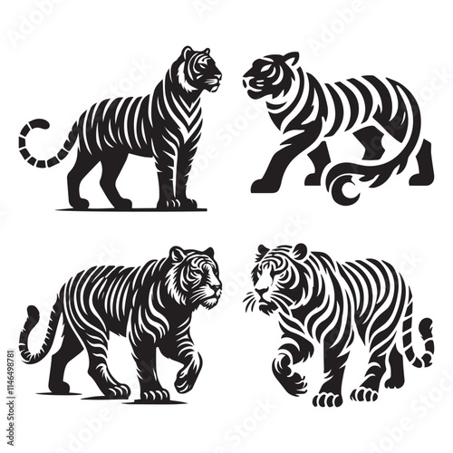 Fototapeta premium Tiger silhouette. Tiger black icon on white background