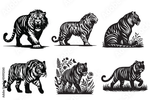 © mdbhraju76, Obraz premium Tiger silhouette vector illustration art - Generative AI