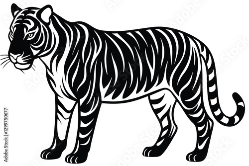 Obraz premium Tiger silhouette vector illustration on white background