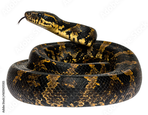 © Prodip, Obraz premium Tiger Snake, Side View, Coiled, Isolated PNG