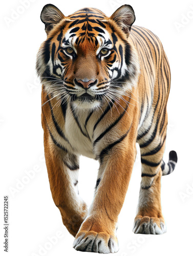 Naklejka premium Tiger strides, powerful orange, black stripes visible