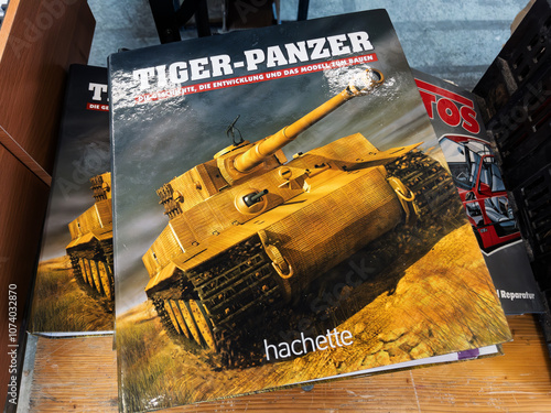 © VGV, Obraz premium Tiger Tank Model Book at Flea Market