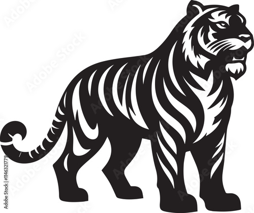 Obraz premium tiger, tiger logo vector, tiger vector illustration, tiger silhouette vector black and white full body eps file