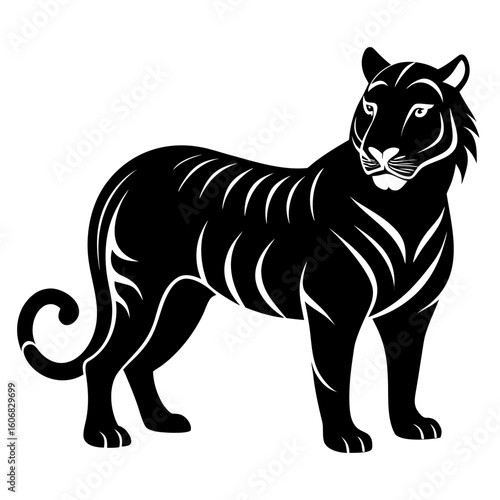 © M Fayaj Design, Obraz premium Tiger vector clean black silhouette design white background