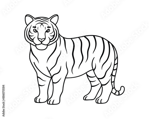 © MDSHORIF, Fototapeta premium Tiger vector line art white background