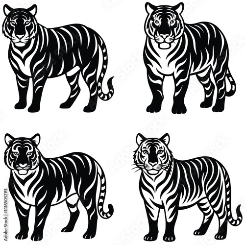 Obraz premium Tiger Vector Silhouetted Bundle Set Collection