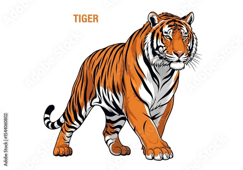 © Nur, Naklejka premium Tiger Vektor image on white background. Suitable for poster, banners, greeting cards, templates, etc