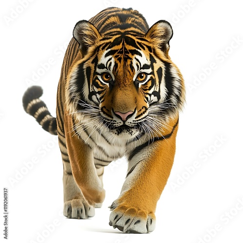 © ardanz, Obraz premium Tiger walking forward, white background, wildlife photography, nature image