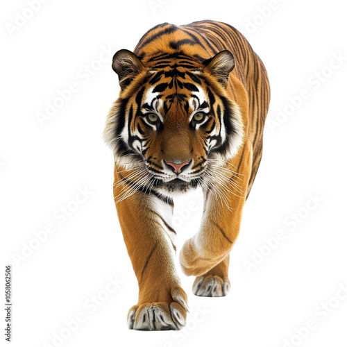© JR-50, Fototapeta premium Tiger walking with intensity, white isolated background