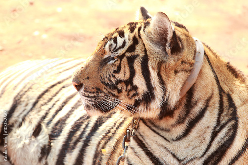 Naklejka premium Tiger was raised in temples. Popular Attractions Kanchanaburi.