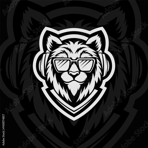 © DzgnVibe, Fototapeta premium Tiger with eyeglasses, mascot esport illustration logo design, black white