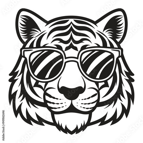 © TRTASFIQ, Obraz premium Tiger with glasses isolated white background