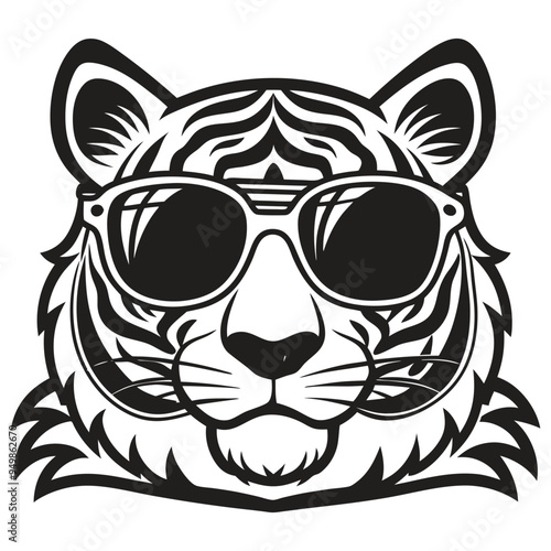 © TRTASFIQ, Obraz premium Tiger with glasses isolated white background