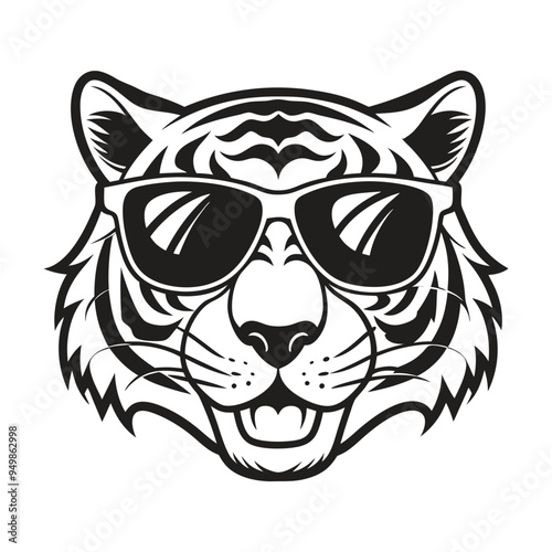 © TRTASFIQ, Obraz premium Tiger with glasses isolated white background