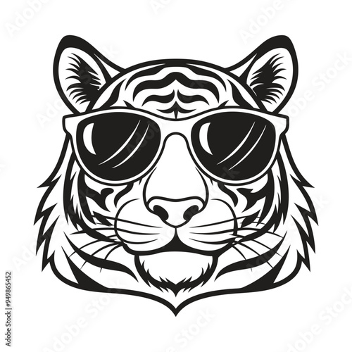 © TRTASFIQ, Obraz premium Tiger with glasses isolated white background