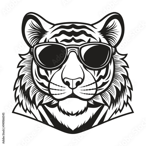 © TRTASFIQ, Obraz premium Tiger with glasses isolated white background