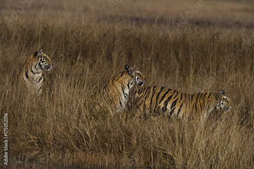 © aussieanouk, Fototapeta premium Tigerfamilie im hohen Gras