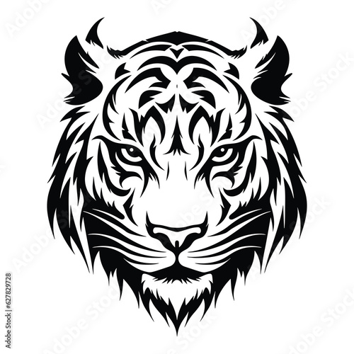 © Tanvir, Fototapeta premium Tigers head Tribal tattoo design. Black isolated on white. Tiger head vector illustration mascot logo.