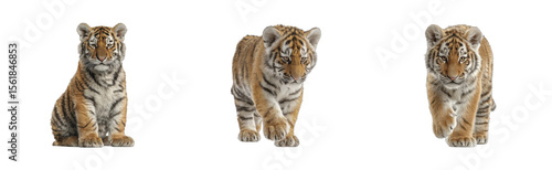 Fototapeta premium Tigers in motion captivating wildlife showcase natural habitat dynamic perspective cut out set png