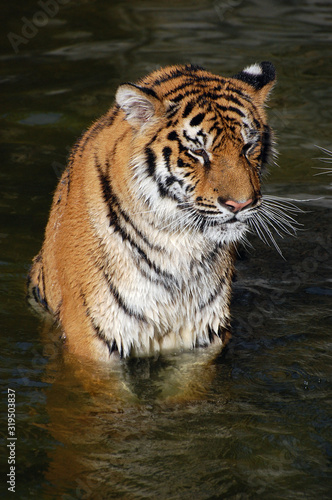© Sergey Kamshylin, Naklejka premium Tigers play in the water.Zoo in Kiev