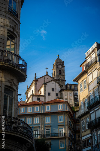 Naklejka premium Tightly pack traditional building facades in Porto, Portugal