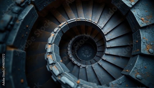 © Nannapin, Fototapeta premium Tightly wound spiral staircase, metallic texture, helix, texture, silver