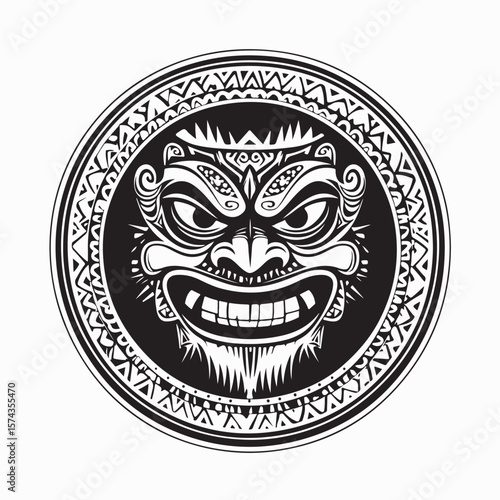 © Istianah, Fototapeta premium Tiki Masks Hawaiian Tribal Totem Faces vector on white background.