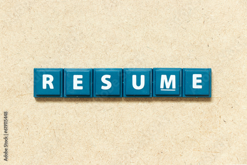 Obraz premium Tile alphabet letter in word resume on wood background