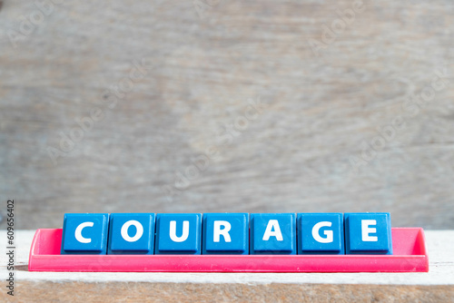 Obraz premium Tile alphabet letter with word courage in red color rack on wood background