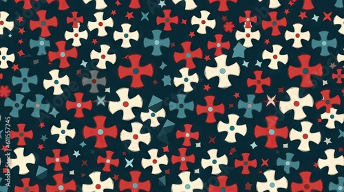Fototapeta premium Tile pattern design featuring flat color crosses. The simple and modern design makes it versatile for various contexts, from religious to decorative. Generative AI
