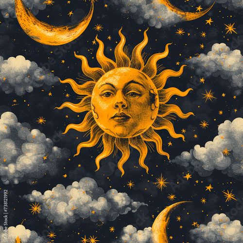 Fototapeta premium Tile with face as sun as background and to fill areas in soft colors, ai...