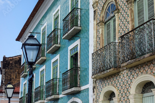 Fototapeta premium tiled facade of historic colonial building in Sao Luis downtown, Maranhao,...