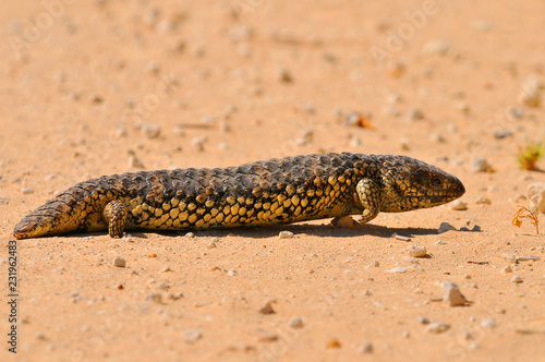 © GISTEL, Fototapeta premium Tiliqua rugosa (Eastern Shingleback) is a short tailed, slow moving species of blue tongued skink found in Australia. Coorong National Park Australia.