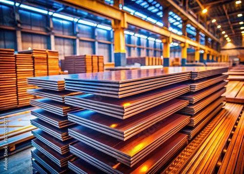 Obraz premium Tilt-shift perspective on metal recycling plates, industrial close-up.