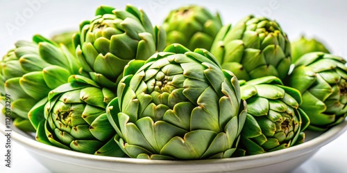 © Caitlin, Fototapeta premium Tilt-Shift Photo: Fresh Artichoke Hearts, Healthy Cooking, White Background