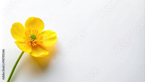 © methinee, Obraz premium Tilted angle yellow buttercup corner border on large white background