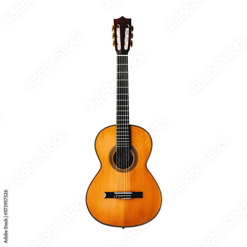 © Full PNG, Naklejka premium tilted classic guitar on a white background