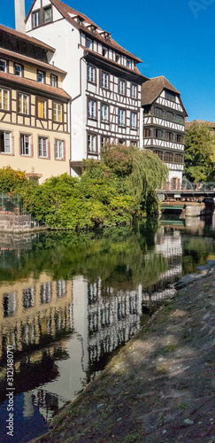 Naklejka premium timber framed houses and their reflections in the Strasbourg canal