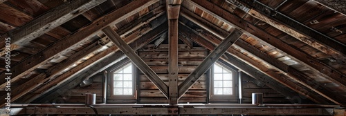 Fototapeta premium Timber rafters of a roof framework in an attic space