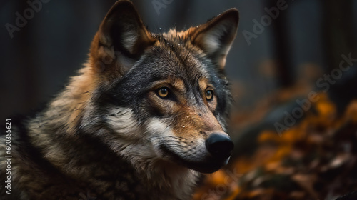 © EwaStudio, Obraz premium Timber Wolf in the Forest. AI Generated