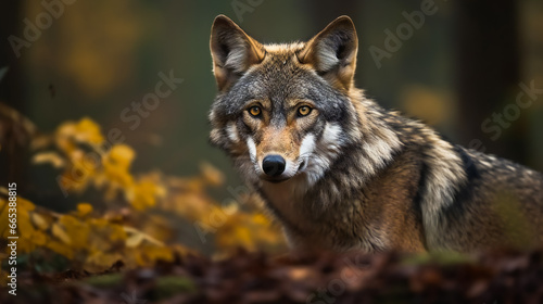 Obraz premium Timber Wolf in the Forest. AI Generated