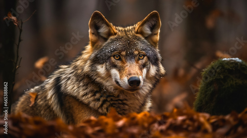 © EwaStudio, Obraz premium Timber Wolf in the Forest. AI Generated