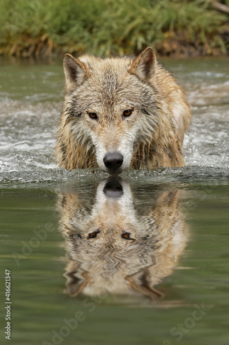 © Danita Delimont, Obraz premium Timber Wolf portrait in small stream.