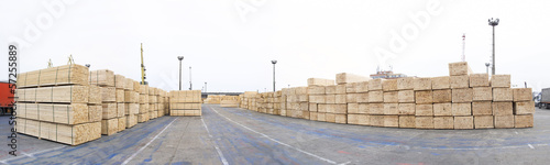 © Ioan Panaite, Fototapeta premium Timber wood piles deposit for export