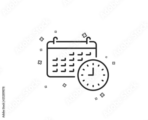 Fototapeta premium Time and calendar line icon. Clock or watch sign. Geometric shapes. Random cross elements. Linear Calendar icon design. Vector