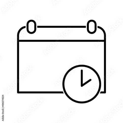 Fototapeta premium Time calendar icon. Clock pictogram. Flat symbol for web. Line stroke. Isolated on white background. Vector eps10