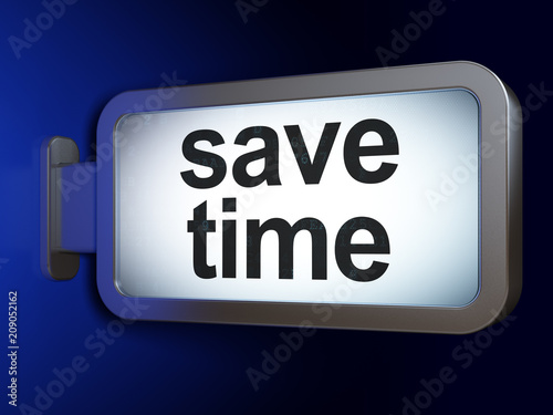 Obraz premium Time concept: Save Time on advertising billboard background, 3D rendering