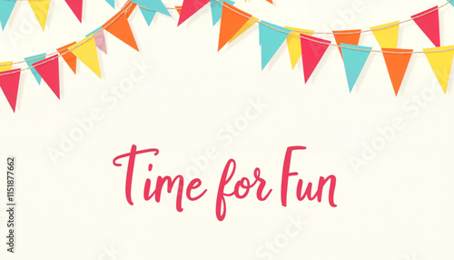 © Nadezhda, Obraz premium "Time for Fun" text with colorful pennant banners